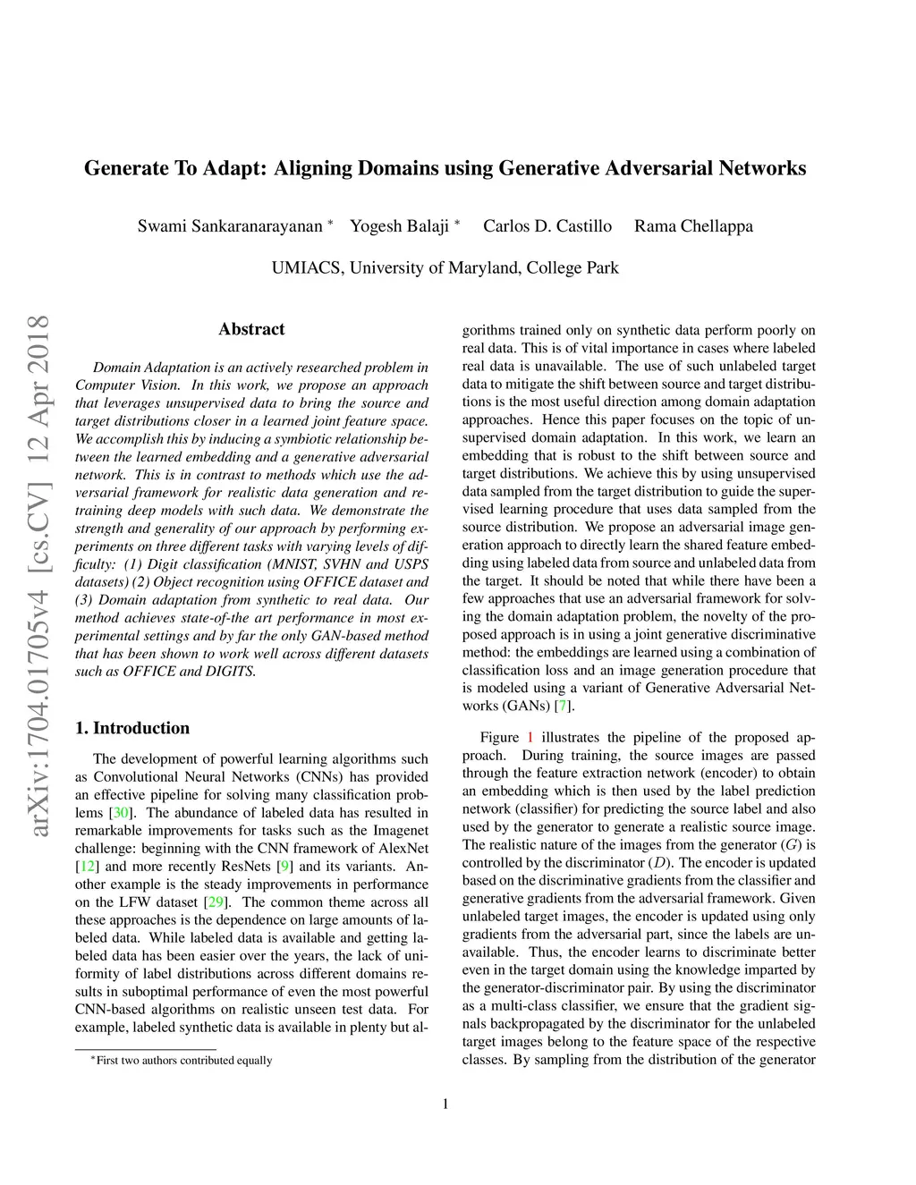 Generate To Adapt: Aligning Domains using Generative Adversarial