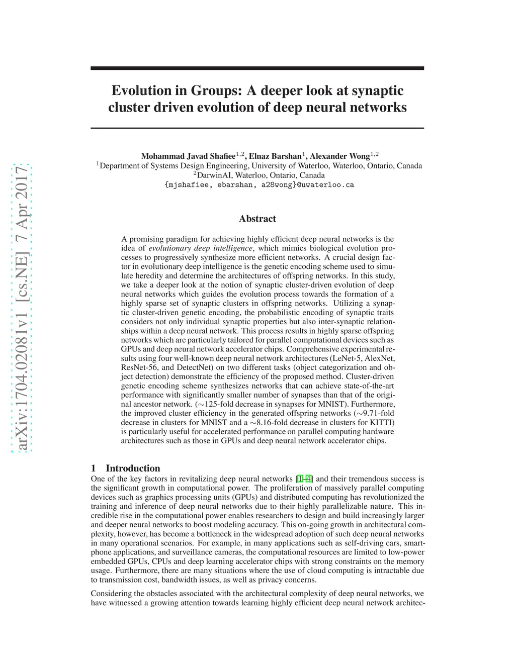 A promising paradigm for achieving highly efficient deep neural networks is the idea of evolutionary deep intelligence, which mimics biological evolution processes to progressively synthesize more efficient networks. A crucial design factor in evolutionary deep intelligence is the genetic encoding scheme used to simulate heredity and determine the architectures of offspring networks. In this study, we take a deeper look at the notion of synaptic cluster-driven evolution of deep neural networks which guides the evolution process towards the formation of a highly sparse set of synaptic clusters in offspring networks. Utilizing a synaptic cluster-driven genetic encoding, the probabilistic encoding of synaptic traits considers not only individual synaptic properties but also inter-synaptic relationships within a deep neural network. This process results in highly sparse offspring networks which are particularly tailored for parallel computational devices such as GPUs and deep neural network accelerator chips. Comprehensive experimental results using four well-known deep neural network architectures (LeNet-5, AlexNet, ResNet-56, and DetectNet) on two different tasks (object categorization and object detection) demonstrate the efficiency of the proposed method. Cluster-driven genetic encoding scheme synthesizes networks that can achieve state-of-the-art performance with significantly smaller number of synapses than that of the original ancestor network. (125-fold decrease in synapses for MNIST). Furthermore, the improved cluster efficiency in the generated offspring networks (9.71-fold decrease in clusters for MNIST and a 8.16-fold decrease in clusters for KITTI) is particularly useful for accelerated performance on parallel computing hardware architectures such as those in GPUs and deep neural network accelerator chips.