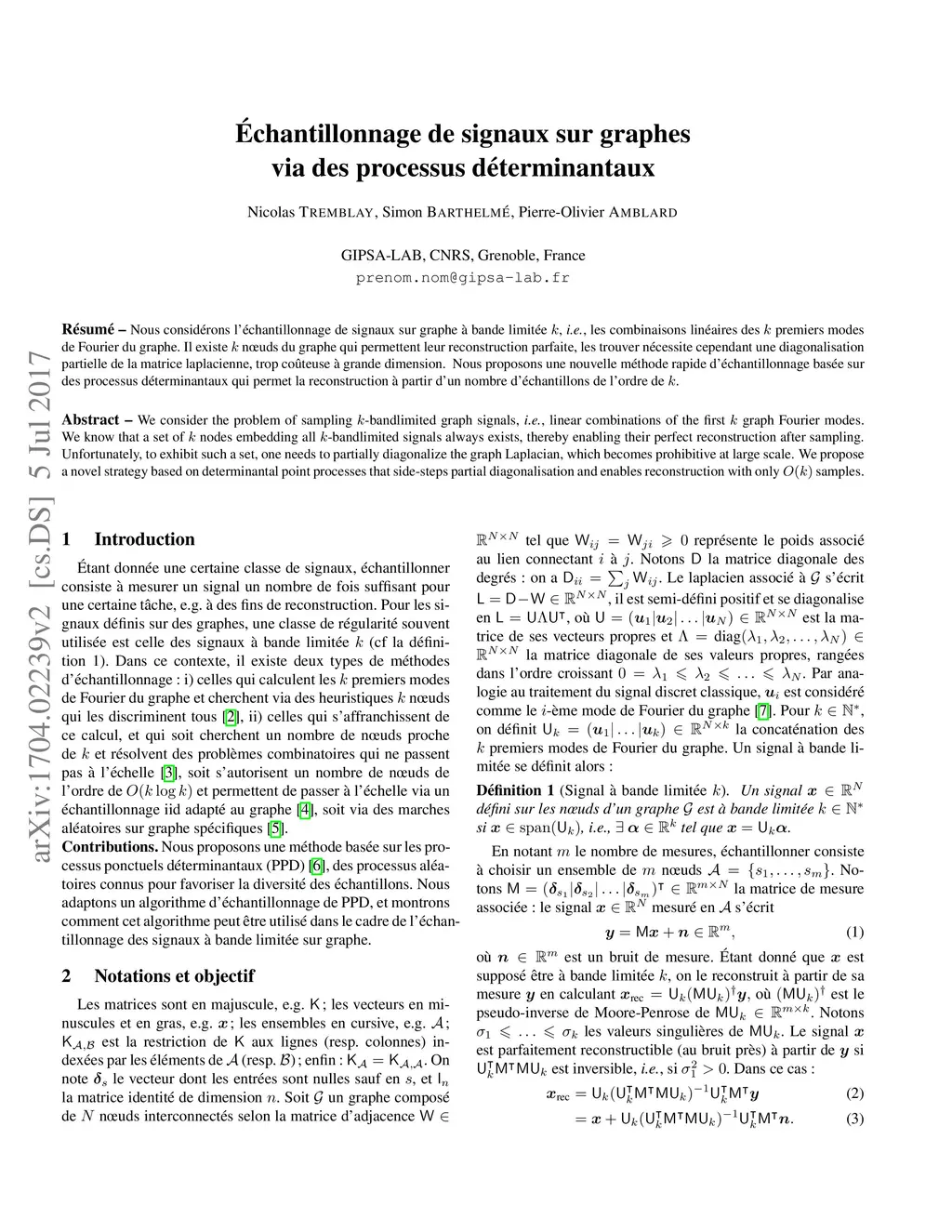 Échantillonnage de signaux sur graphes via des processus
