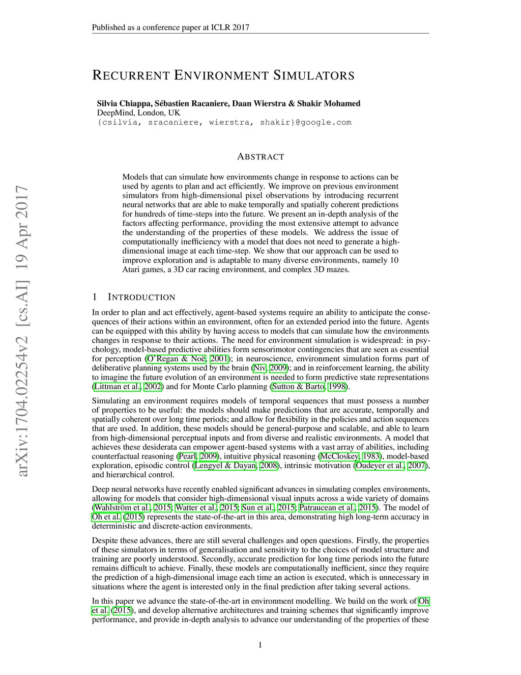 Recurrent Environment Simulators