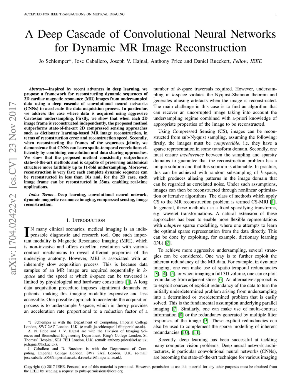 A Deep Cascade of Convolutional Neural Networks for Dynamic MR Image