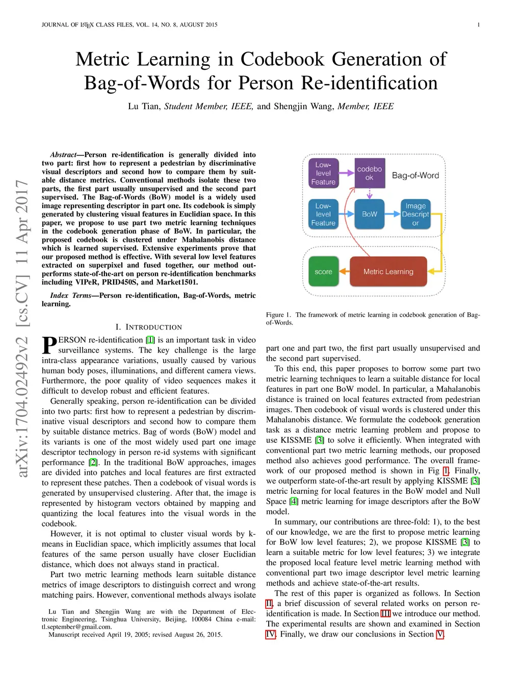 Metric Learning in Codebook Generation of Bag-of-Words for Person