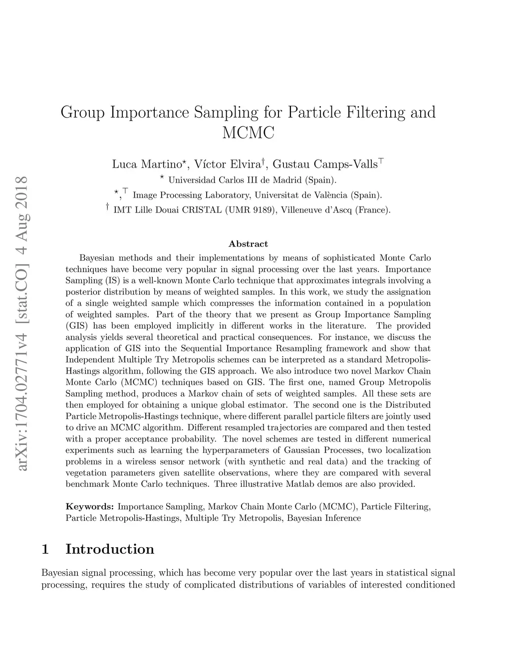 Bayesian methods and their implementations by means of sophisticated Monte Carlo techniques have become very popular in signal processing over the last years. Importance Sampling (IS) is a well-known Monte Carlo technique that approximates integrals involving a posterior distribution by means of weighted samples. In this work, we study the assignation of a single weighted sample which compresses the information contained in a population of weighted samples. Part of the theory that we present as Group Importance Sampling (GIS) has been employed implicitly in different works in the literature. The provided analysis yields several theoretical and practical consequences. For instance, we discuss the application of GIS into the Sequential Importance Resampling framework and show that Independent Multiple Try Metropolis schemes can be interpreted as a standard Metropolis-Hastings algorithm, following the GIS approach. We also introduce two novel Markov Chain Monte Carlo (MCMC) techniques based on GIS. The first one, named Group Metropolis Sampling method, produces a Markov chain of sets of weighted samples. All these sets are then employed for obtaining a unique global estimator. The second one is the Distributed Particle Metropolis-Hastings technique, where different parallel particle filters are jointly used to drive an MCMC algorithm. Different resampled trajectories are compared and then tested with a proper acceptance probability. The novel schemes are tested in different numerical experiments such as learning the hyperparameters of Gaussian Processes, two localization problems in a wireless sensor network (with synthetic and real data) and the tracking of vegetation parameters given satellite observations, where they are compared with several benchmark Monte Carlo techniques. Three illustrative Matlab demos are also provided.