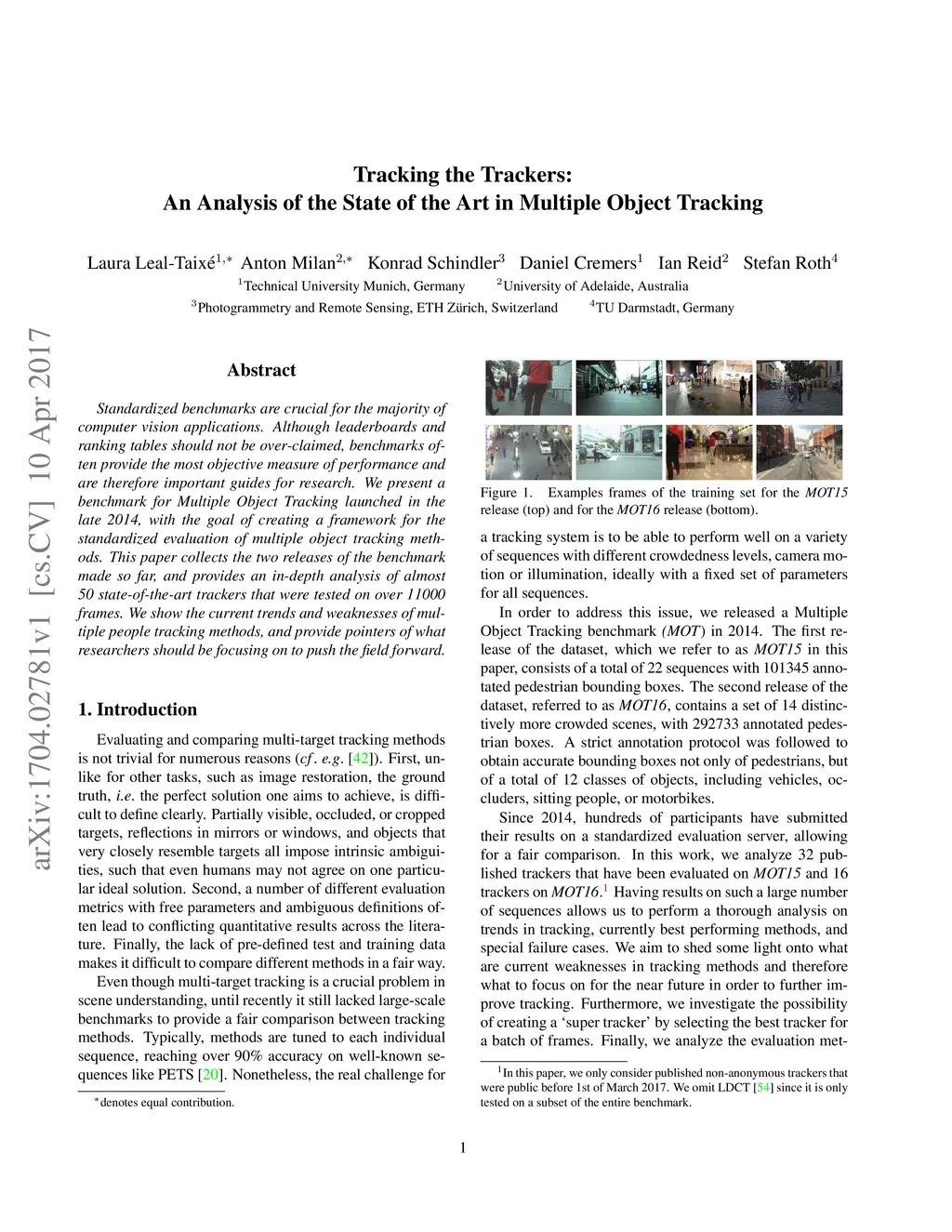Tracking the Trackers: An Analysis of the State of the Art in Multiple