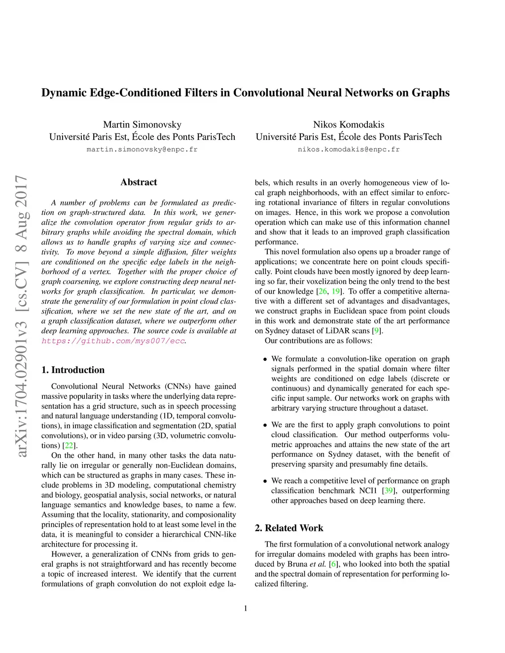 Dynamic Edge-Conditioned Filters in Convolutional Neural Networks on