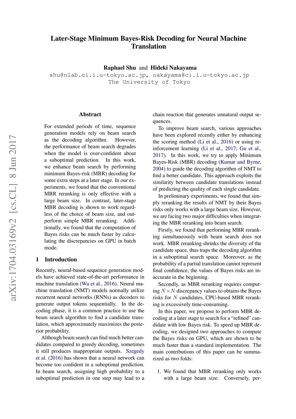 Later-stage Minimum Bayes-Risk Decoding for Neural Machine Translation