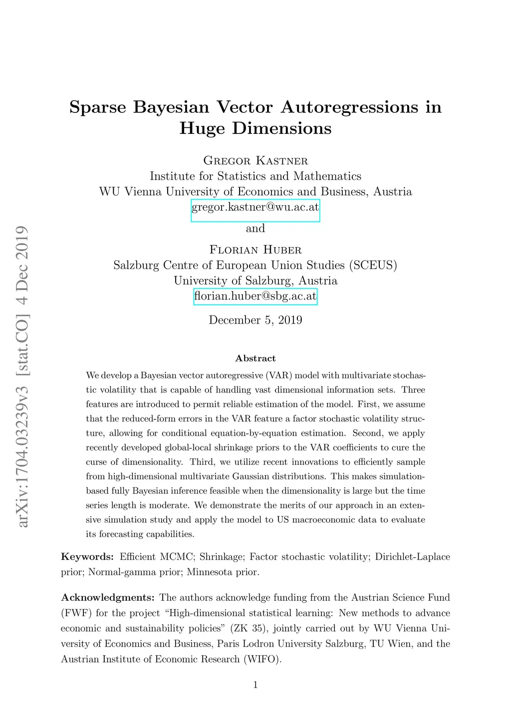 Sparse Bayesian vector autoregressions in huge dimensions