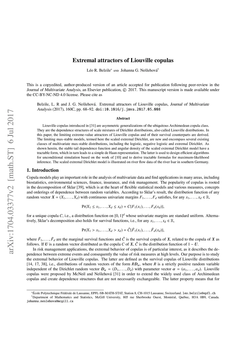 Liouville copulas, which were introduced in McNeil and Ne\v{s}lehov\'a (2010), are asymmetric generalizations of the ubiquitous Archimedean copula class. They are the dependence structures of scale mixtures of Dirichlet distributions, also called Liouville distributions. In this paper, the limiting extreme-value copulas of Liouville copulas and of their survival counterparts are derived. The limiting max-stable models, termed here the scaled extremal Dirichlet, are new and encompass several existing classes of multivariate max-stable distributions, including the logistic, negative logistic and extremal Dirichlet. As shown herein, the stable tail dependence function and angular density of the scaled extremal Dirichlet model have a tractable form, which in turn leads to a simple de Haan representation. The latter is used to design efficient algorithms for unconditional simulation based on the work of Dombry, Engelke and Oesting (2015) and to derive tractable formulas for maximum-likelihood inference. The scaled extremal Dirichlet model is illustrated on river flow data of the river Isar in southern Germany.
