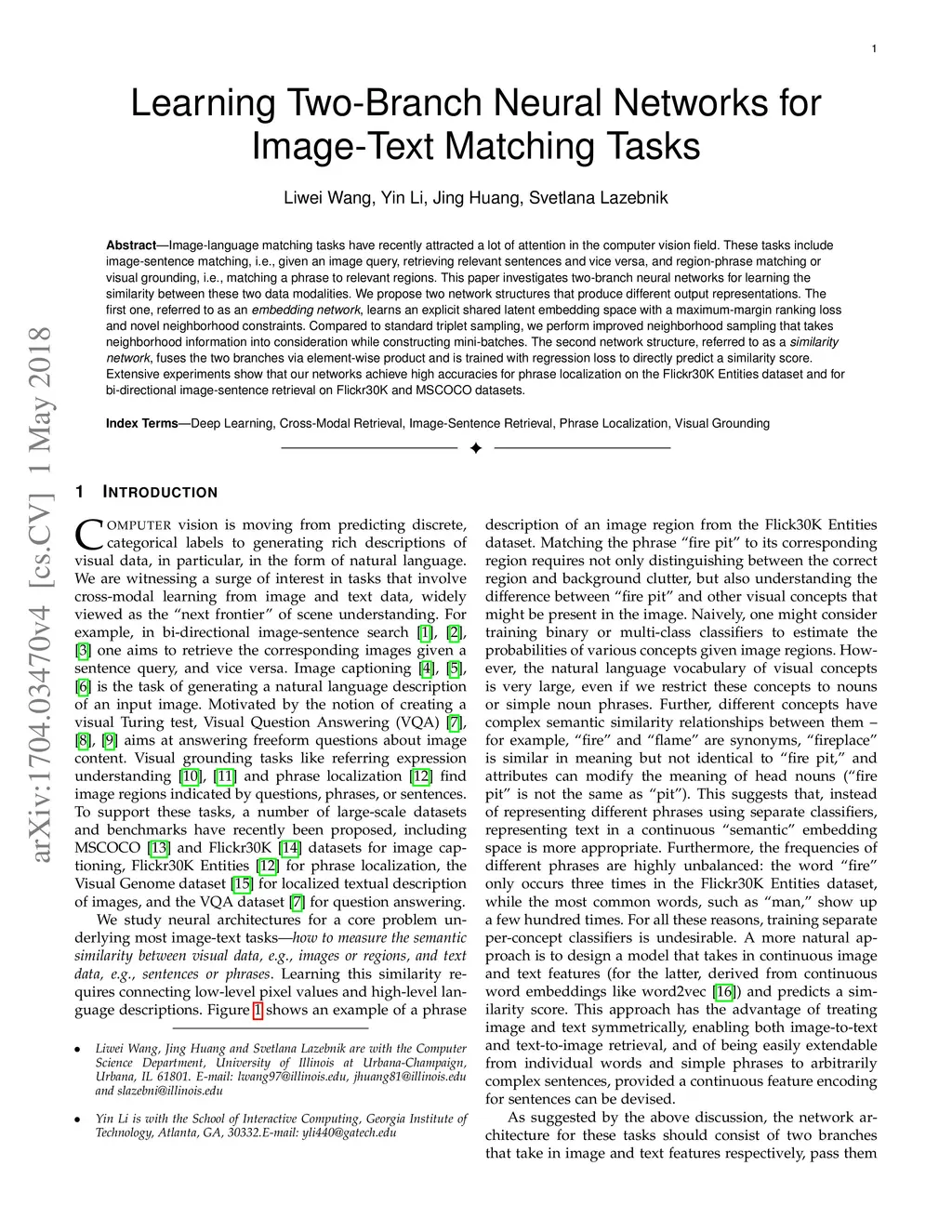 Learning Two-Branch Neural Networks for Image-Text Matching Tasks