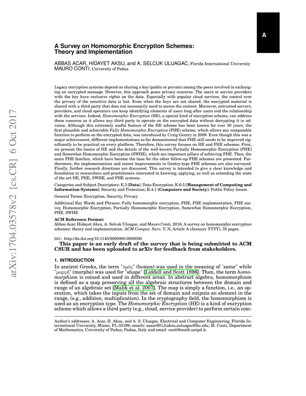 A Survey on Homomorphic Encryption Schemes: Theory and Implementation