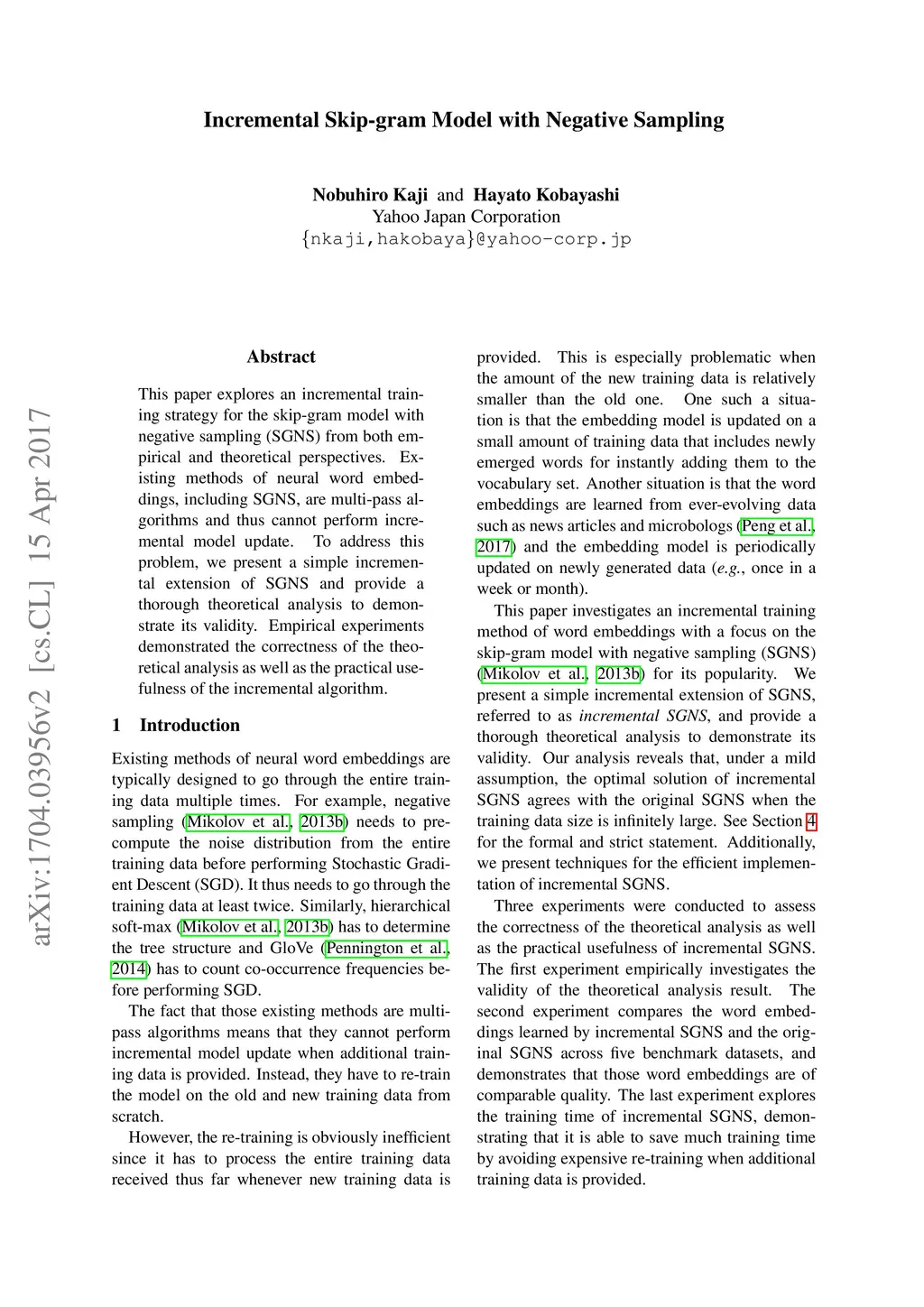 This paper explores an incremental training strategy for the skip-gram model with negative sampling (SGNS) from both empirical and theoretical perspectives. Existing methods of neural word embeddings, including SNGS, are multi-pass algorithms and thus cannot perform incremental model update. To address this problem, we present a simple incremental extension of SNGS and provide a thorough theoretical analysis to demonstrate its validity. Empirical experiments demonstrated the correctness of the theoretical analysis as well as the practical usefulness of the incremental algorithm.