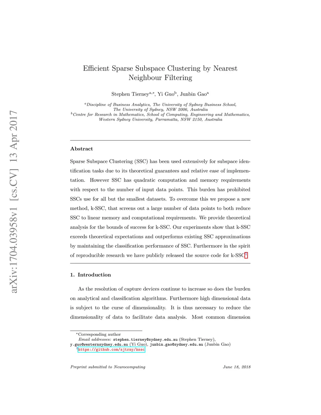Efficient Sparse Subspace Clustering by Nearest Neighbour Filtering