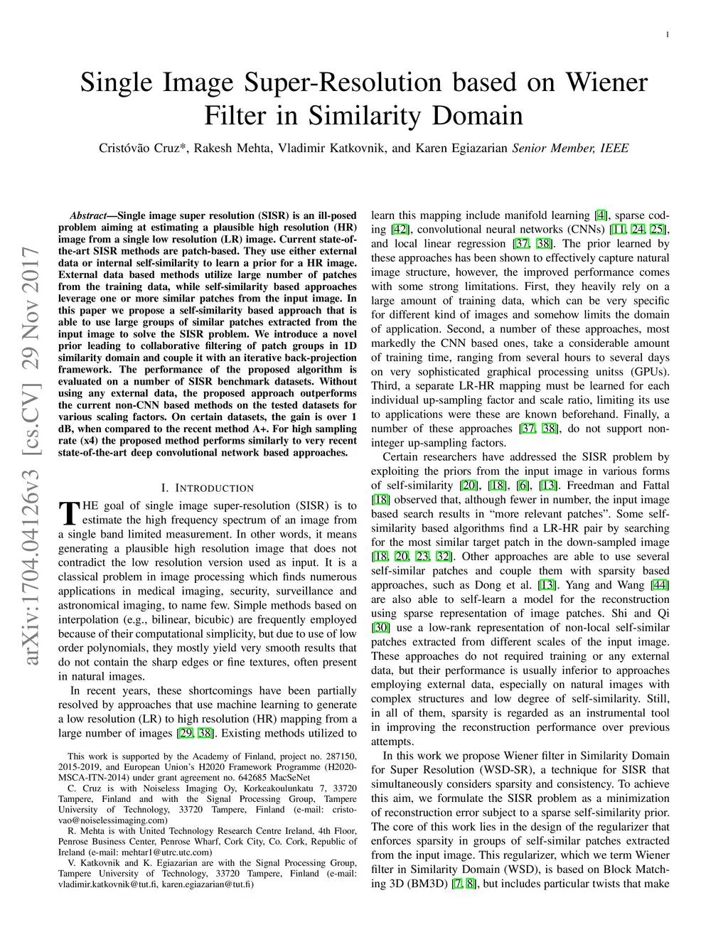 Single Image Super-Resolution based on Wiener Filter in Similarity