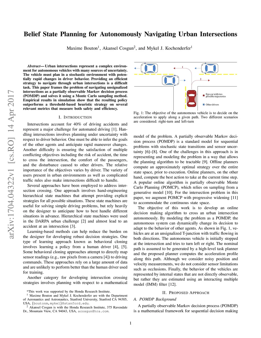Belief State Planning for Autonomously Navigating Urban Intersections