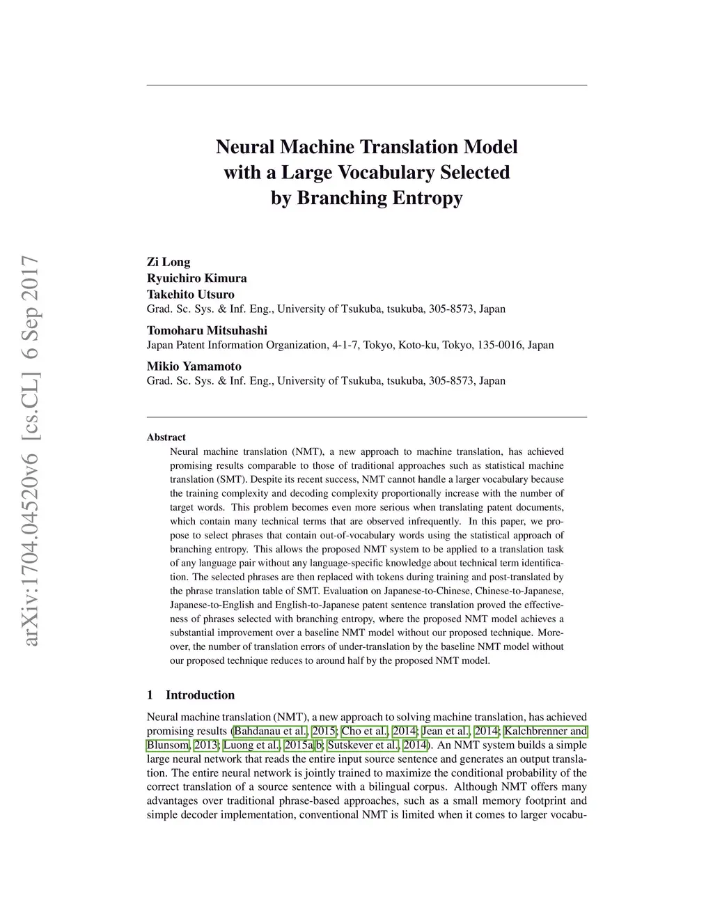 Neural Machine Translation Model with a Large Vocabulary Selected by