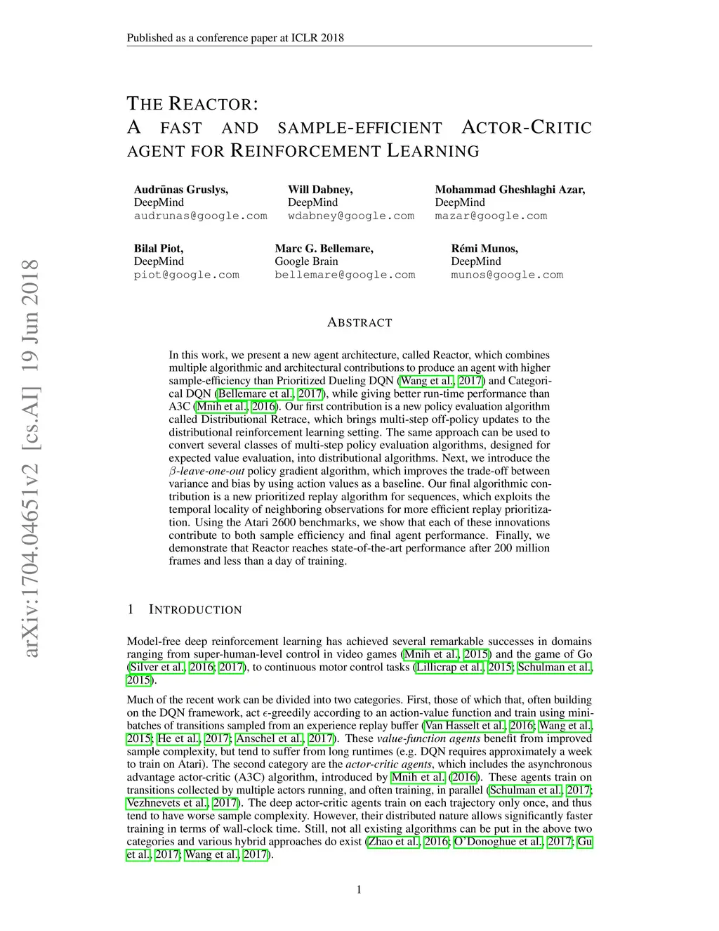 The Reactor: A fast and sample-efficient Actor-Critic agent for