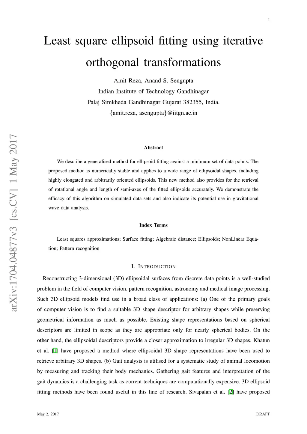 Least square ellipsoid fitting using iterative orthogonal