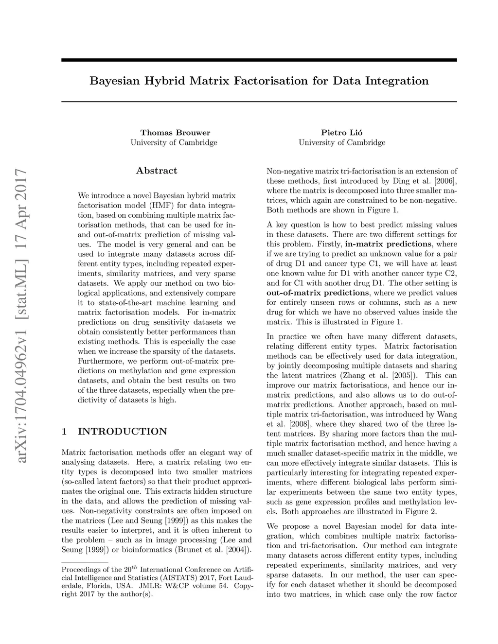 Bayesian Hybrid Matrix Factorisation for Data Integration