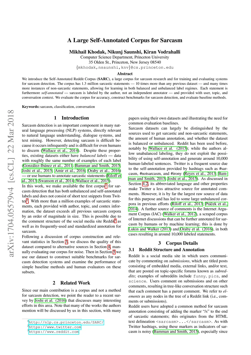A Large Self-Annotated Corpus for Sarcasm