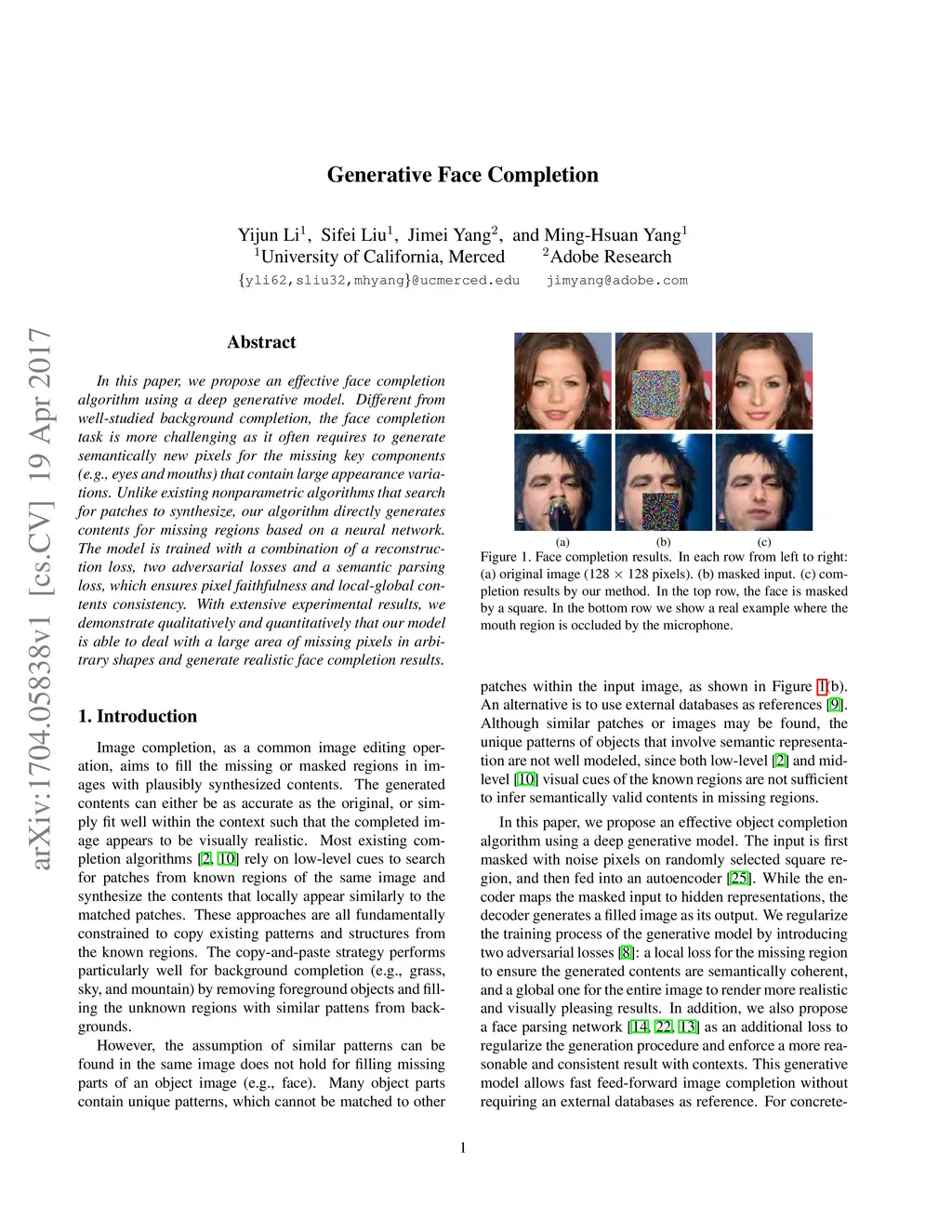 Generative Face Completion