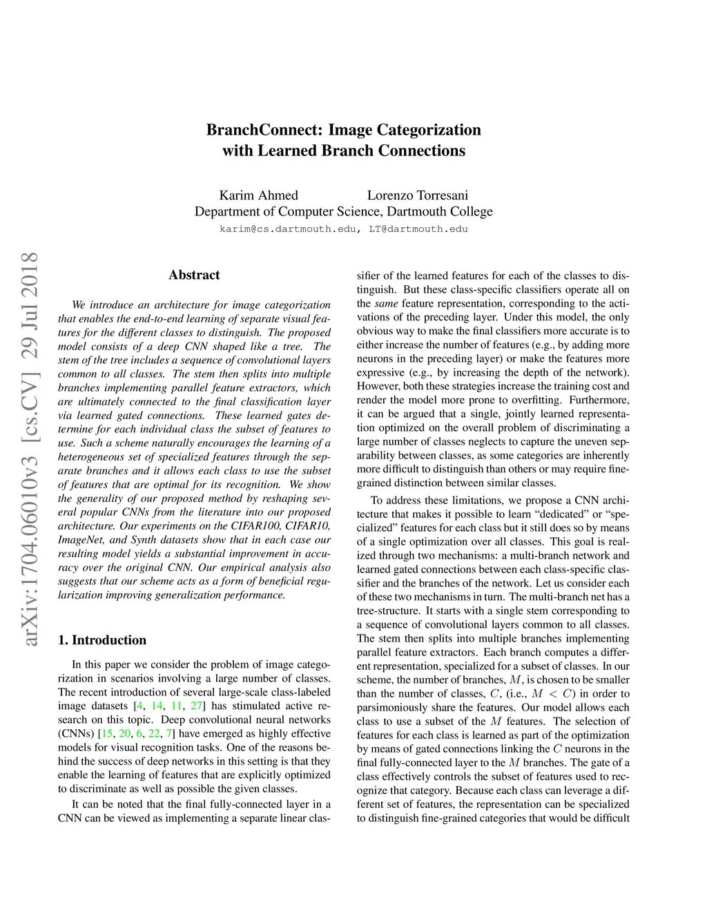 BranchConnect: Large-Scale Visual Recognition with Learned Branch