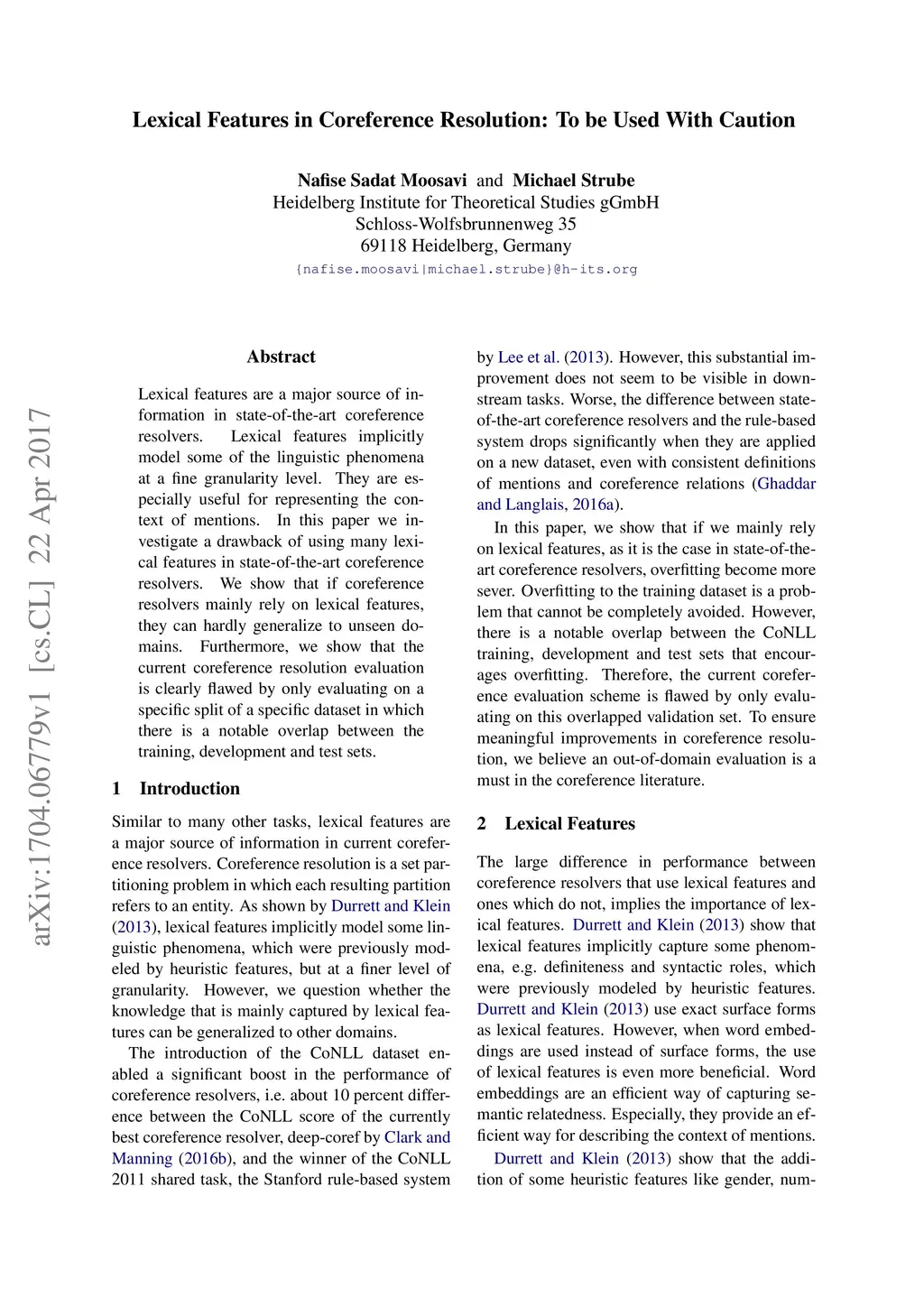 Lexical Features in Coreference Resolution: To be Used With Caution