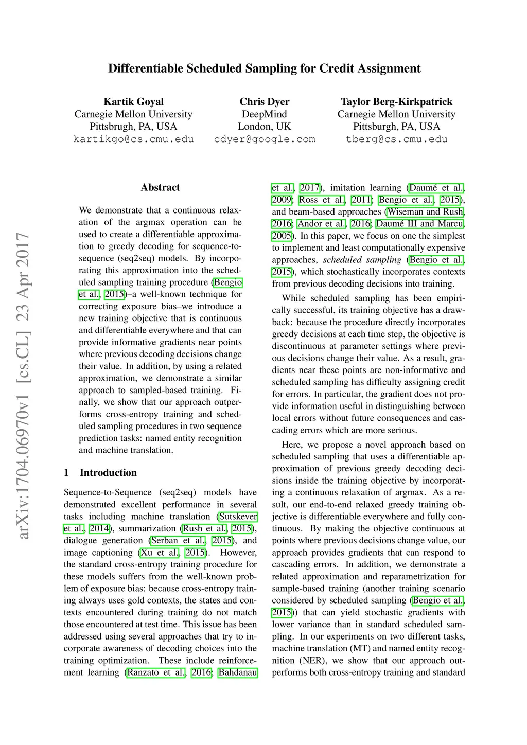 Differentiable Scheduled Sampling for Credit Assignment