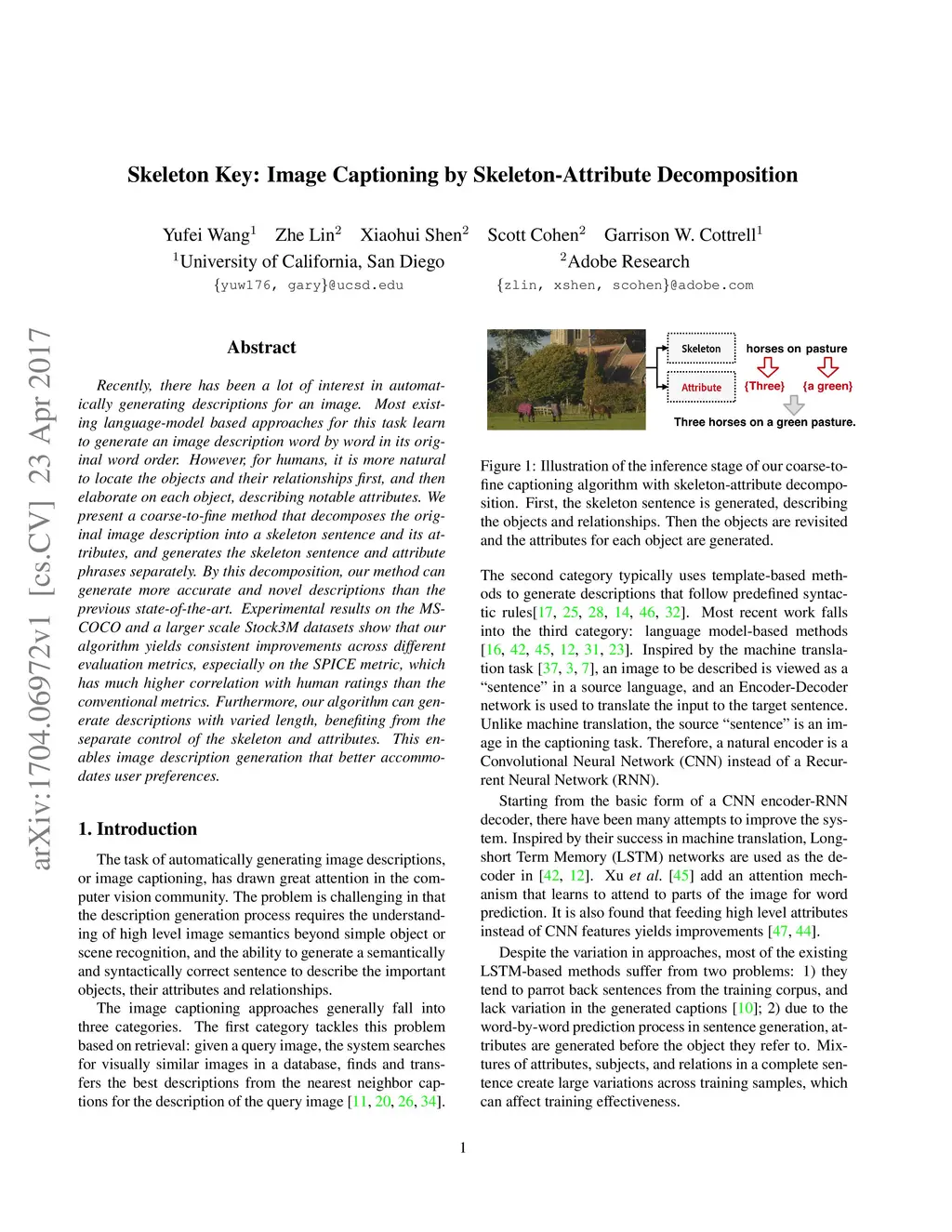 Skeleton Key: Image Captioning by Skeleton-Attribute Decomposition