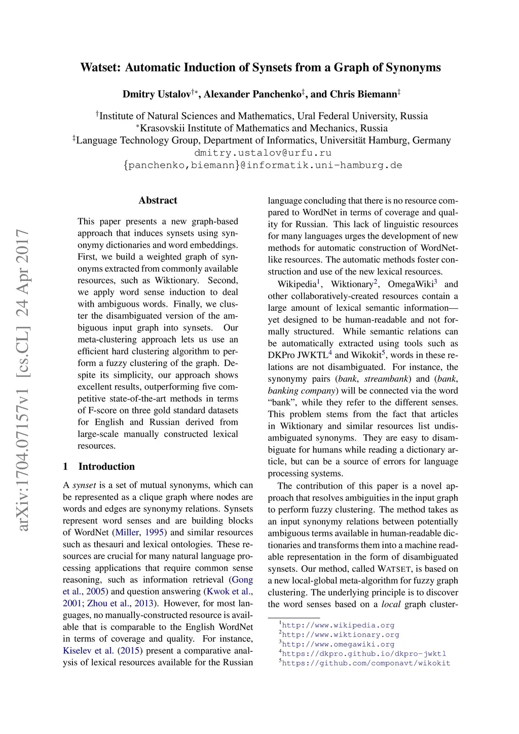Watset: Automatic Induction of Synsets from a Graph of Synonyms