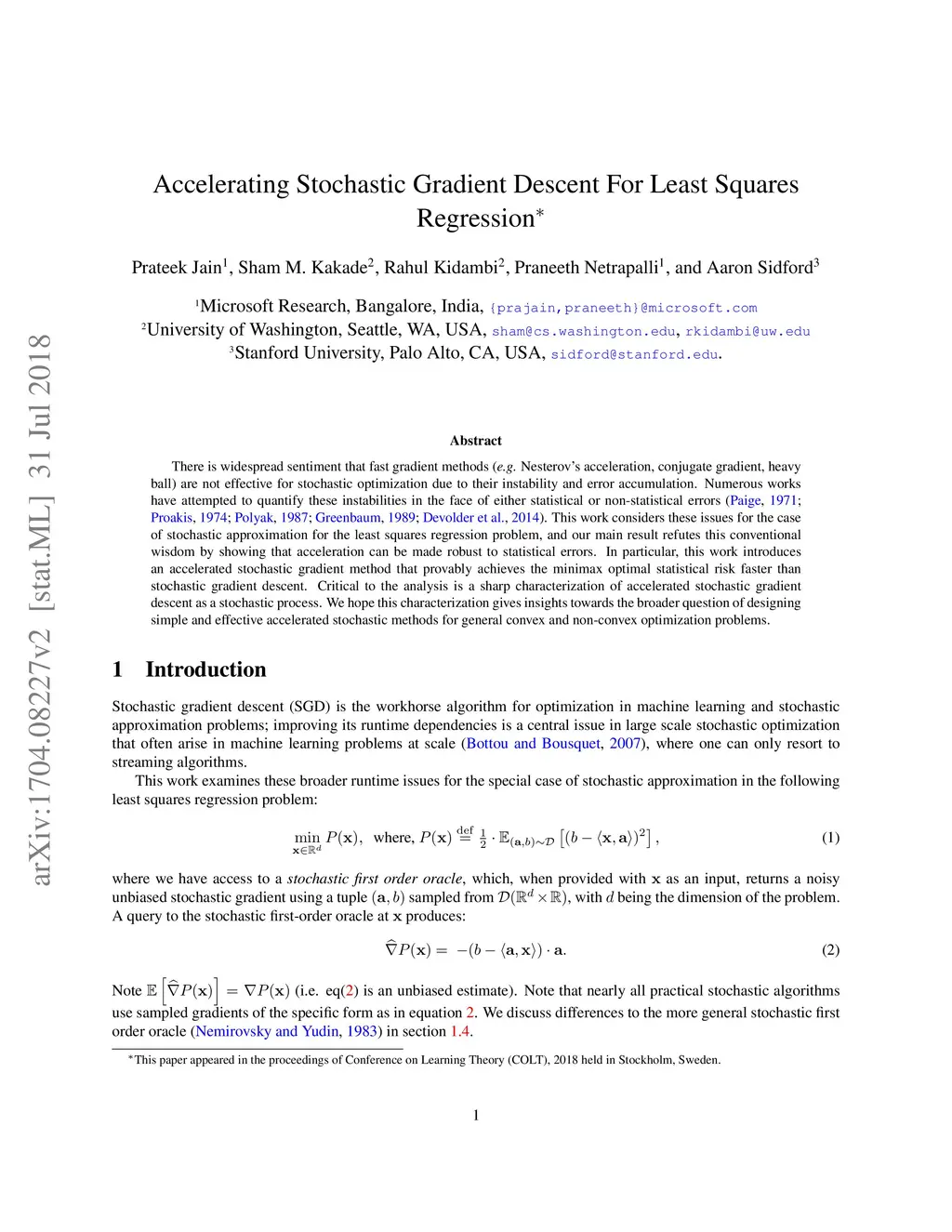 Accelerating Stochastic Gradient Descent For Least Squares Regression