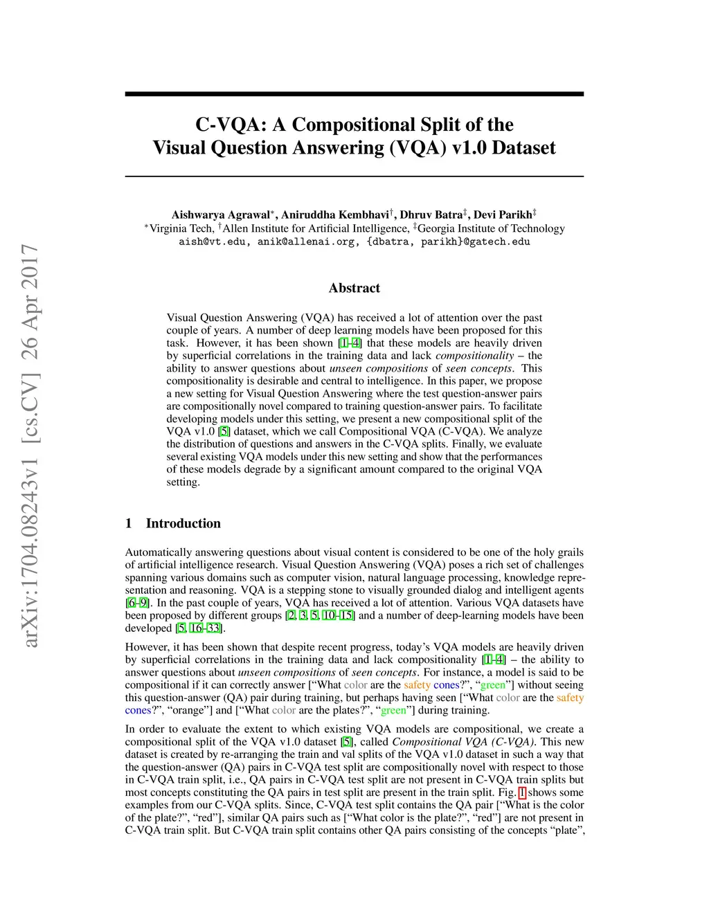 C-VQA: A Compositional Split of the Visual Question Answering (VQA) v1.0