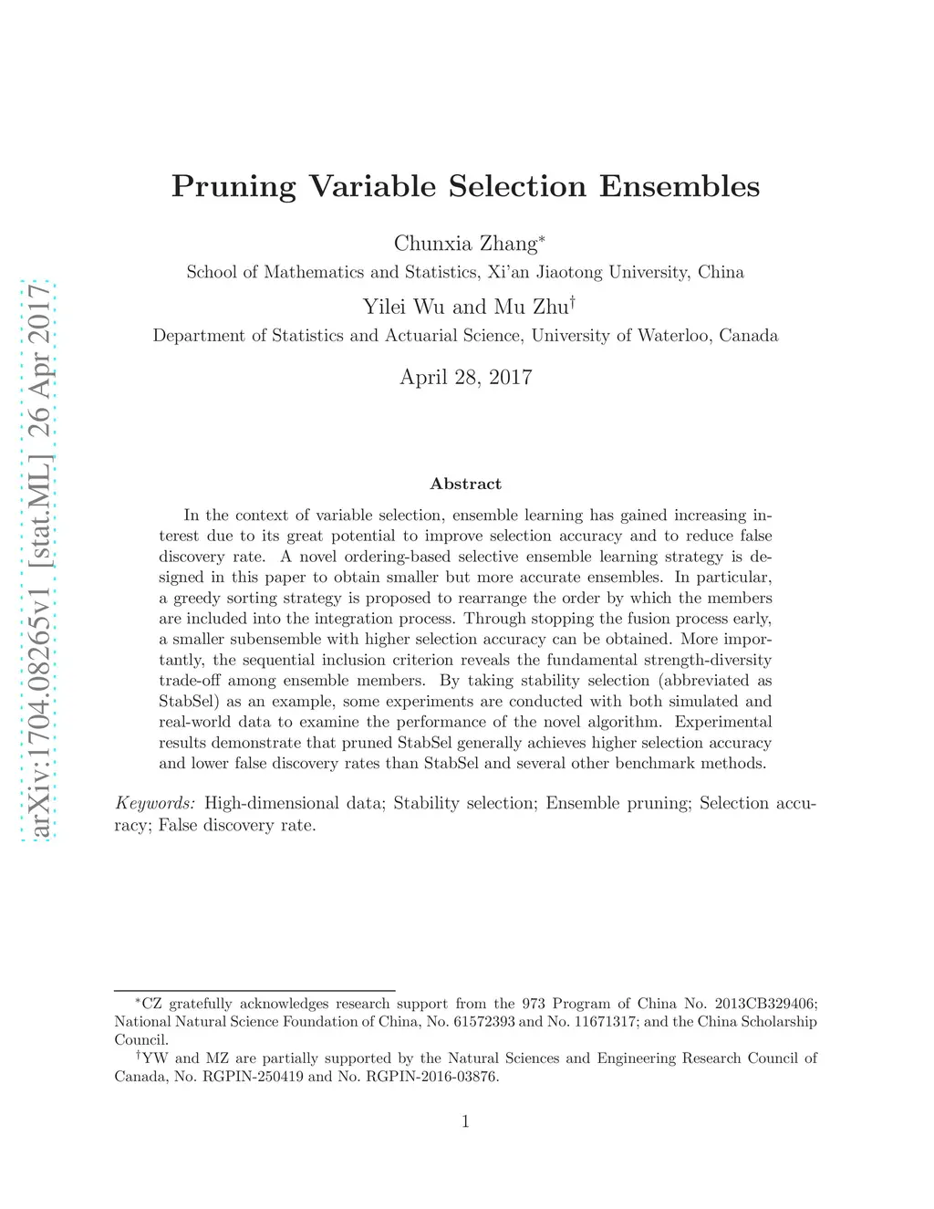 Pruning variable selection ensembles