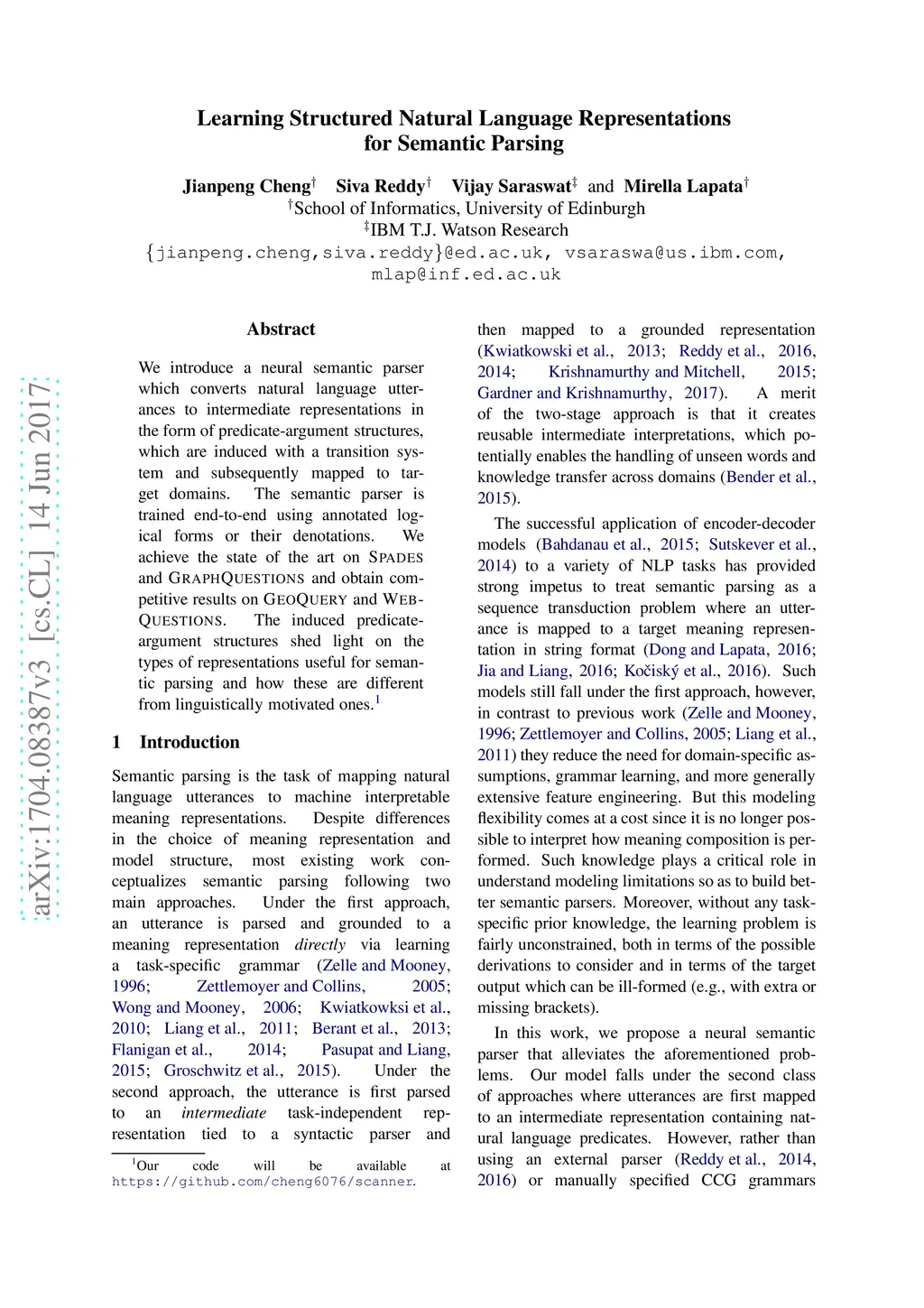 We introduce a neural semantic parser that converts natural language utterances to intermediate representations in the form of predicate-argument structures, which are induced with a transition system and subsequently mapped to target domains. The semantic parser is trained end-to-end using annotated logical forms or their denotations. We obtain competitive results on various datasets. The induced predicate-argument structures shed light on the types of representations useful for semantic parsing and how these are different from linguistically motivated ones.