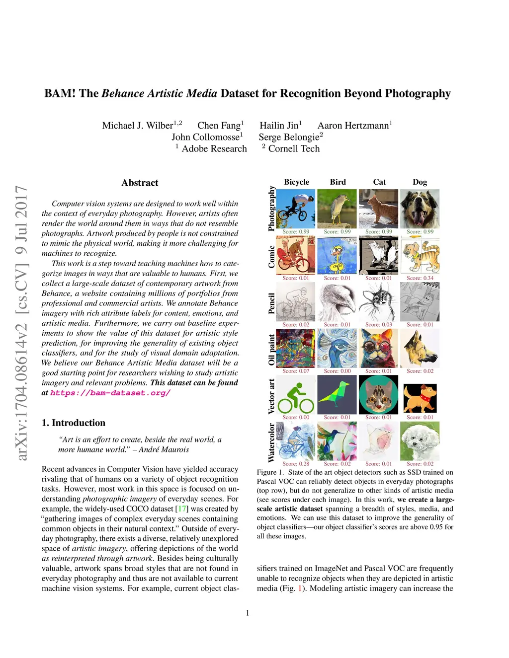 BAM! The Behance Artistic Media Dataset for Recognition Beyond