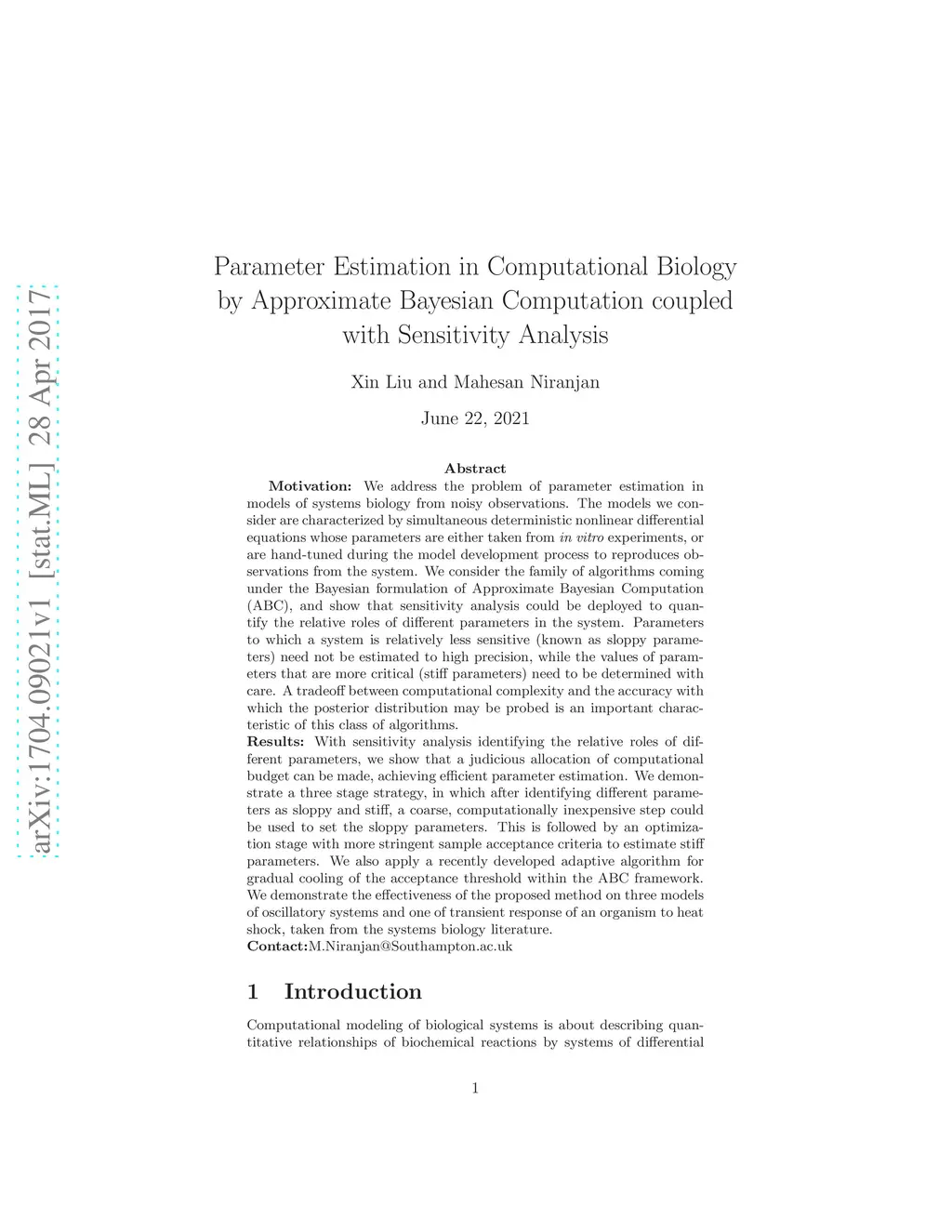 We address the problem of parameter estimation in models of systems biology from noisy observations. The models we consider are characterized by simultaneous deterministic nonlinear differential equations whose parameters are either taken from in vitro experiments, or are hand-tuned during the model development process to reproduces observations from the system. We consider the family of algorithms coming under the Bayesian formulation of Approximate Bayesian Computation (ABC), and show that sensitivity analysis could be deployed to quantify the relative roles of different parameters in the system. Parameters to which a system is relatively less sensitive (known as sloppy parameters) need not be estimated to high precision, while the values of parameters that are more critical (stiff parameters) need to be determined with care. A tradeoff between computational complexity and the accuracy with which the posterior distribution may be probed is an important characteristic of this class of algorithms.