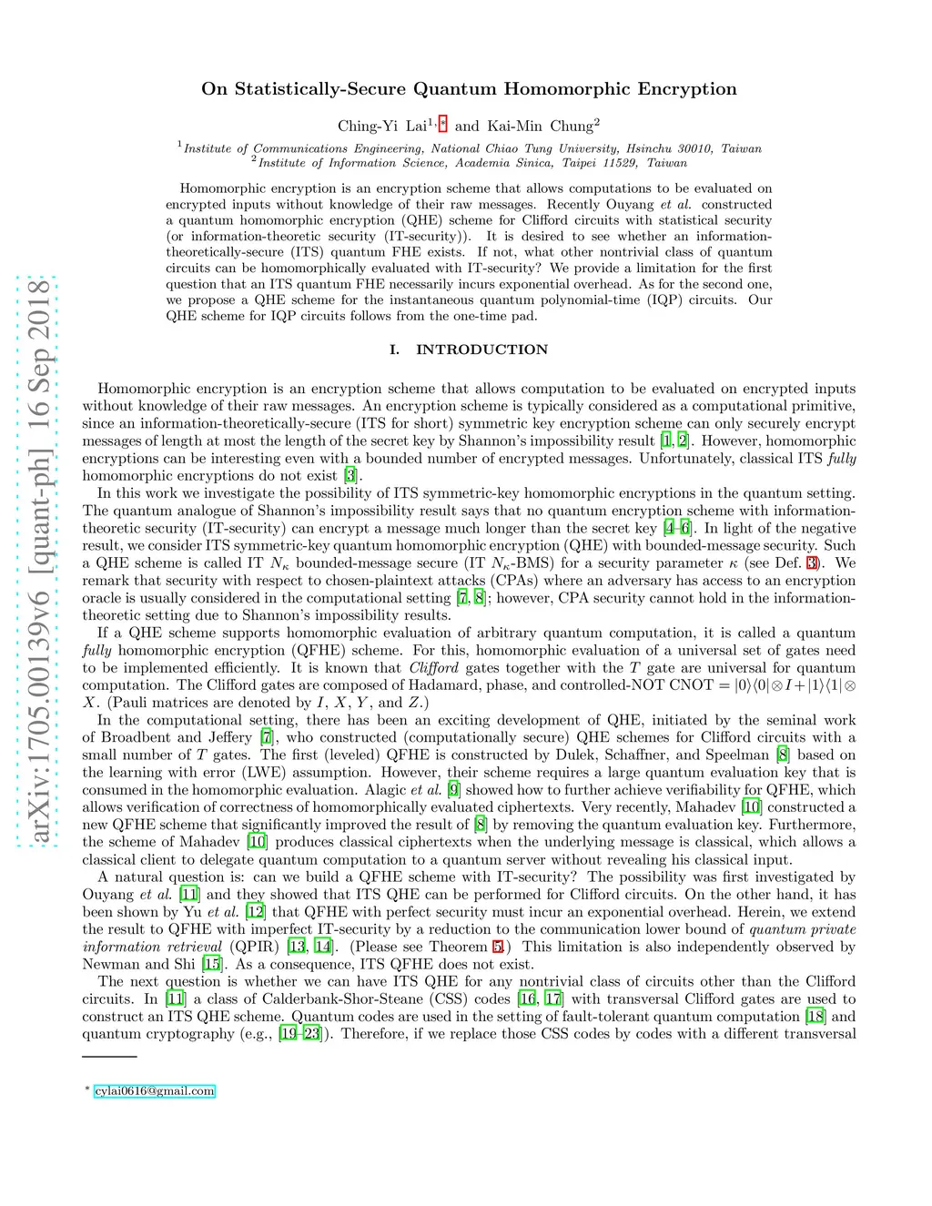 On Statistically-Secure Quantum Homomorphic Encryption