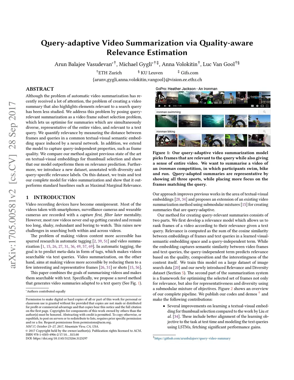 Query-adaptive Video Summarization via Quality-aware Relevance