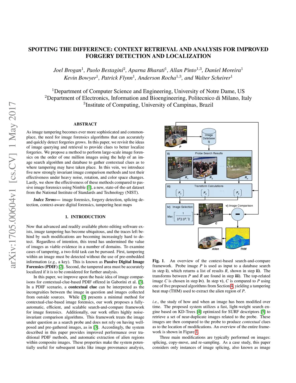 As image tampering becomes ever more sophisticated and commonplace, the need for image forensics algorithms that can accurately and quickly detect forgeries grows. In this paper, we revisit the ideas of image querying and retrieval to provide clues to better localize forgeries. We propose a method to perform large-scale image forensics on the order of one million images using the help of an image search algorithm and database to gather contextual clues as to where tampering may have taken place. In this vein, we introduce five new strongly invariant image comparison methods and test their effectiveness under heavy noise, rotation, and color space changes. Lastly, we show the effectiveness of these methods compared to passive image forensics using Nimble [https://www.nist.gov/itl/iad/mig/nimble-challenge], a new, state-of-the-art dataset from the National Institute of Standards and Technology (NIST).