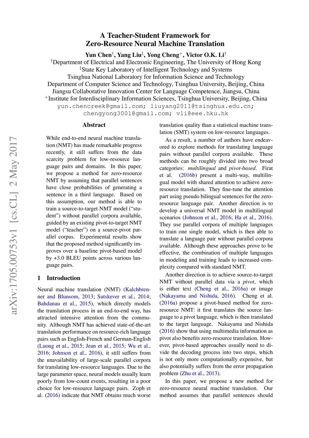 A Teacher-Student Framework for Zero-Resource Neural Machine Translation