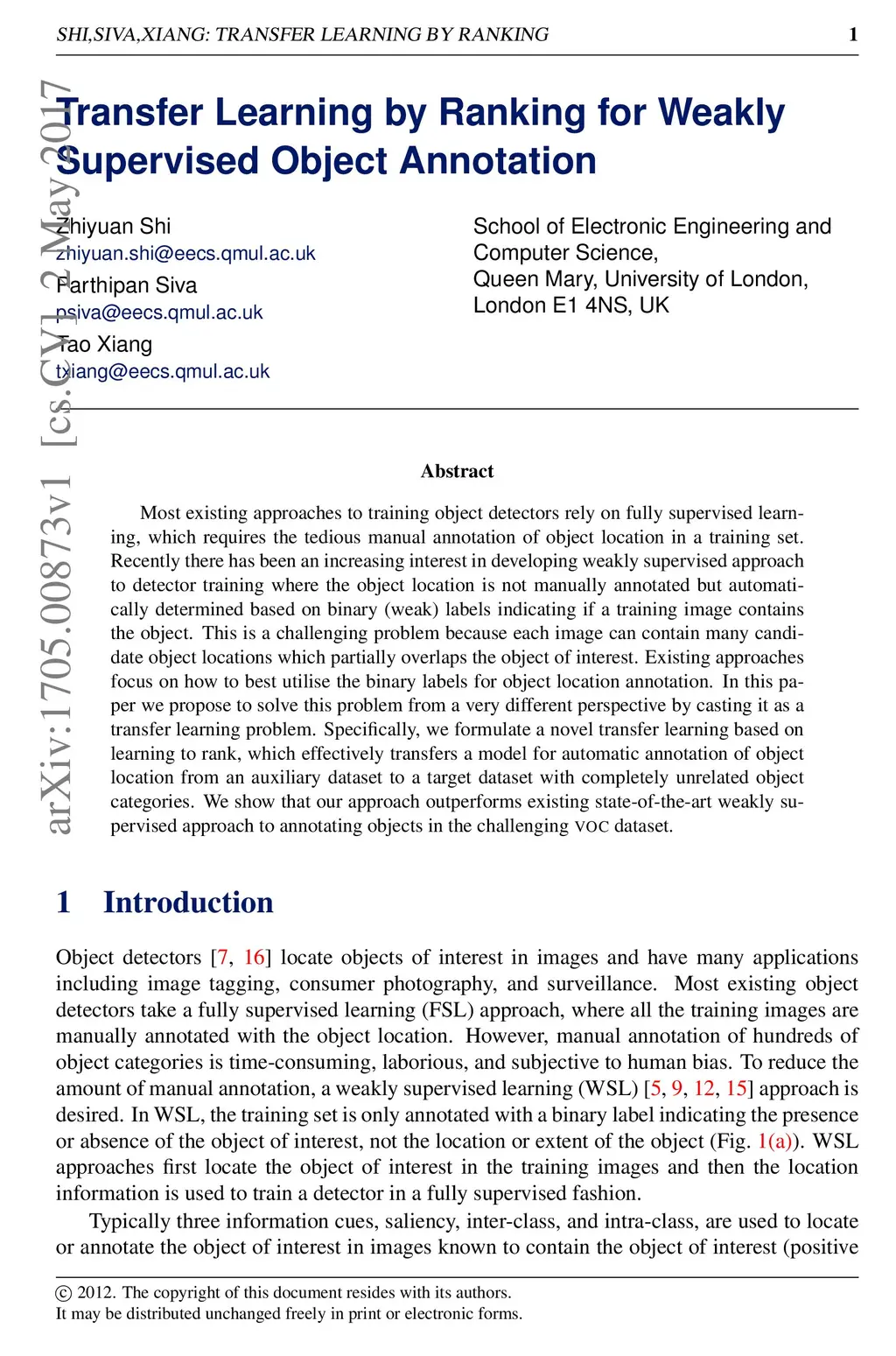 Transfer Learning by Ranking for Weakly Supervised Object Annotation