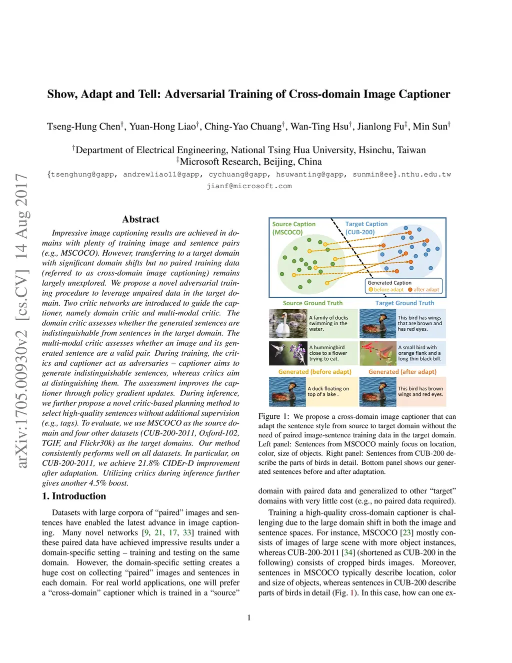 Show, Adapt and Tell: Adversarial Training of Cross-domain Image