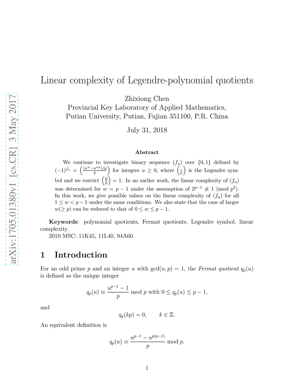 We continue to investigate binary sequence over defined by for integers , where is the Legendre symbol and we restrict . In an earlier work, the linear complexity of was determined for under the assumption of . In this work, we give possible values on the linear complexity of for all under the same conditions. We also state that the case of larger can be reduced to that of .