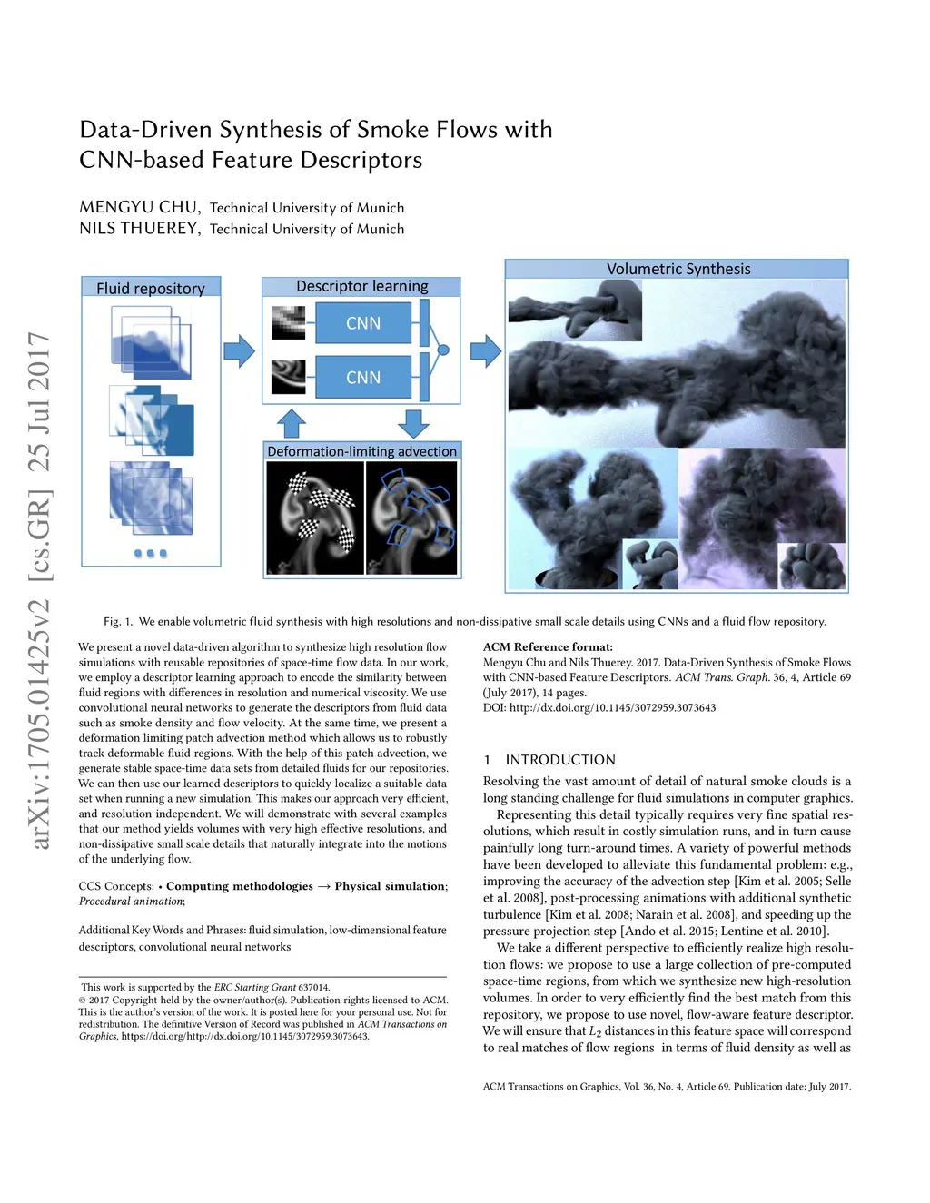 Data-Driven Synthesis of Smoke Flows with CNN-based Feature Descriptors