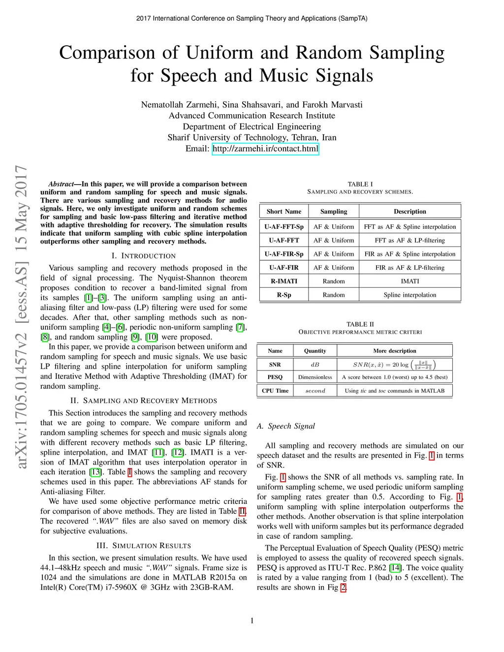 Comparison of Uniform and Random Sampling for Speech and Music Signals