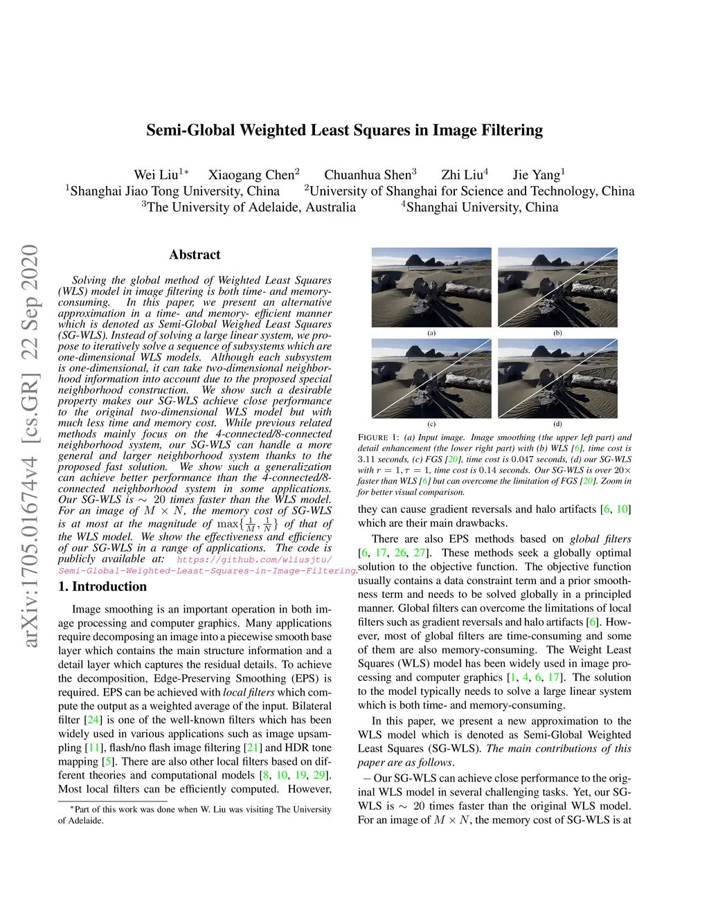 Semi-Global Weighted Least Squares in Image Filtering