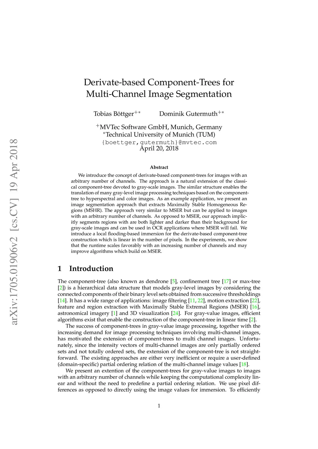 We introduce the concept of derivate-based component-trees for images with an arbitrary number of channels. The approach is a natural extension of the classical component-tree devoted to gray-scale images. The similar structure enables the translation of many gray-level image processing techniques based on the component-tree to hyperspectral and color images. As an example application, we present an image segmentation approach that extracts Maximally Stable Homogeneous Regions (MSHR). The approach very similar to MSER but can be applied to images with an arbitrary number of channels. As opposed to MSER, our approach implicitly segments regions with are both lighter and darker than their background for gray-scale images and can be used in OCR applications where MSER will fail. We introduce a local flooding-based immersion for the derivate-based component-tree construction which is linear in the number of pixels. In the experiments, we show that the runtime scales favorably with an increasing number of channels and may improve algorithms which build on MSER.