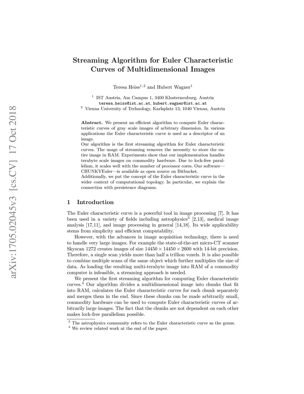 We present an efficient algorithm to compute Euler characteristic curves of gray scale images of arbitrary dimension. In various applications the Euler characteristic curve is used as a descriptor of an image. Our algorithm is the first streaming algorithm for Euler characteristic curves. The usage of streaming removes the necessity to store the entire image in RAM. Experiments show that our implementation handles terabyte scale images on commodity hardware. Due to lock-free parallelism, it scales well with the number of processor cores. Our software---CHUNKYEuler---is available as open source on Bitbucket. Additionally, we put the concept of the Euler characteristic curve in the wider context of computational topology. In particular, we explain the connection with persistence diagrams.