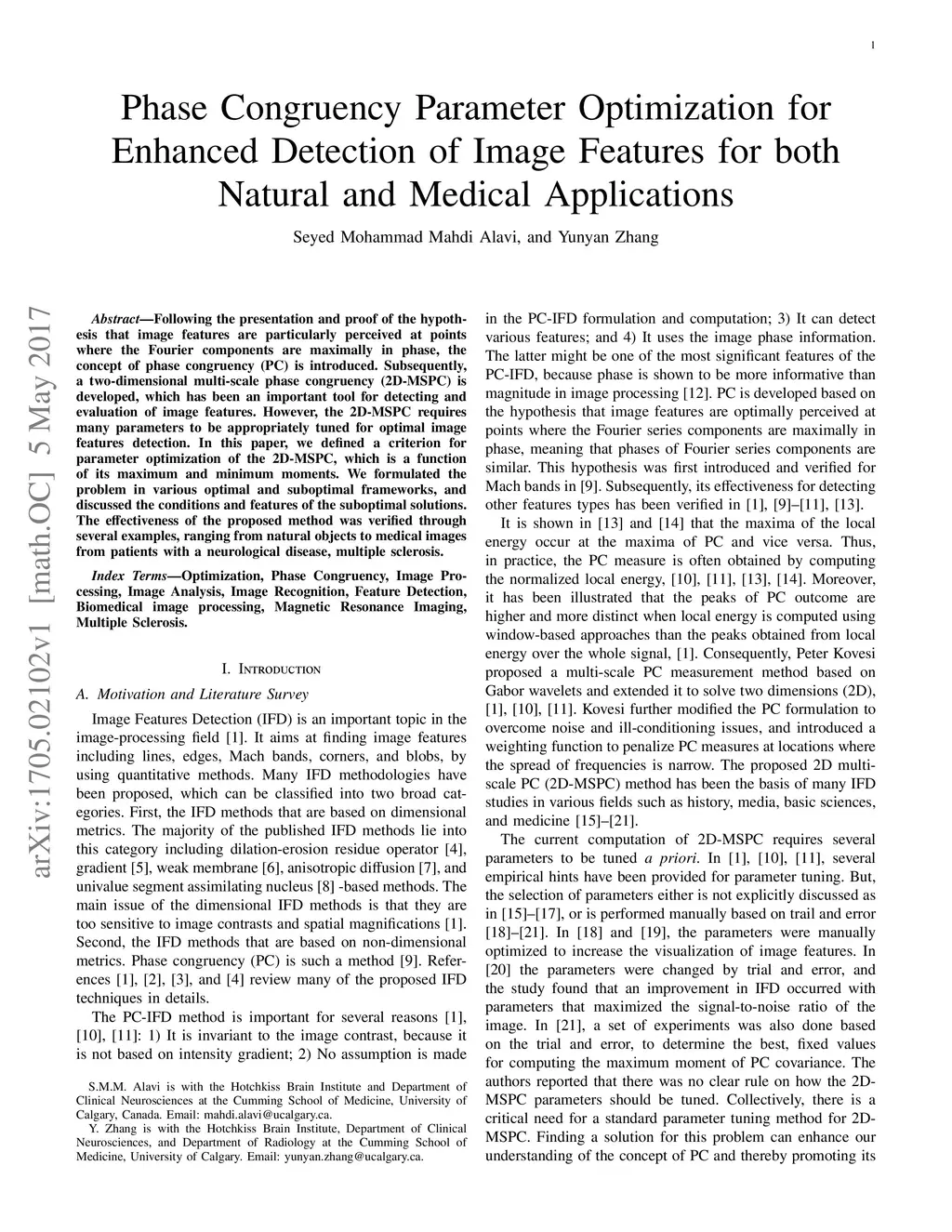 Following the presentation and proof of the hypothesis that image features are particularly perceived at points where the Fourier components are maximally in phase, the concept of phase congruency (PC) is introduced. Subsequently, a two-dimensional multi-scale phase congruency (2D-MSPC) is developed, which has been an important tool for detecting and evaluation of image features. However, the 2D-MSPC requires many parameters to be appropriately tuned for optimal image features detection. In this paper, we defined a criterion for parameter optimization of the 2D-MSPC, which is a function of its maximum and minimum moments. We formulated the problem in various optimal and suboptimal frameworks, and discussed the conditions and features of the suboptimal solutions. The effectiveness of the proposed method was verified through several examples, ranging from natural objects to medical images from patients with a neurological disease, multiple sclerosis.