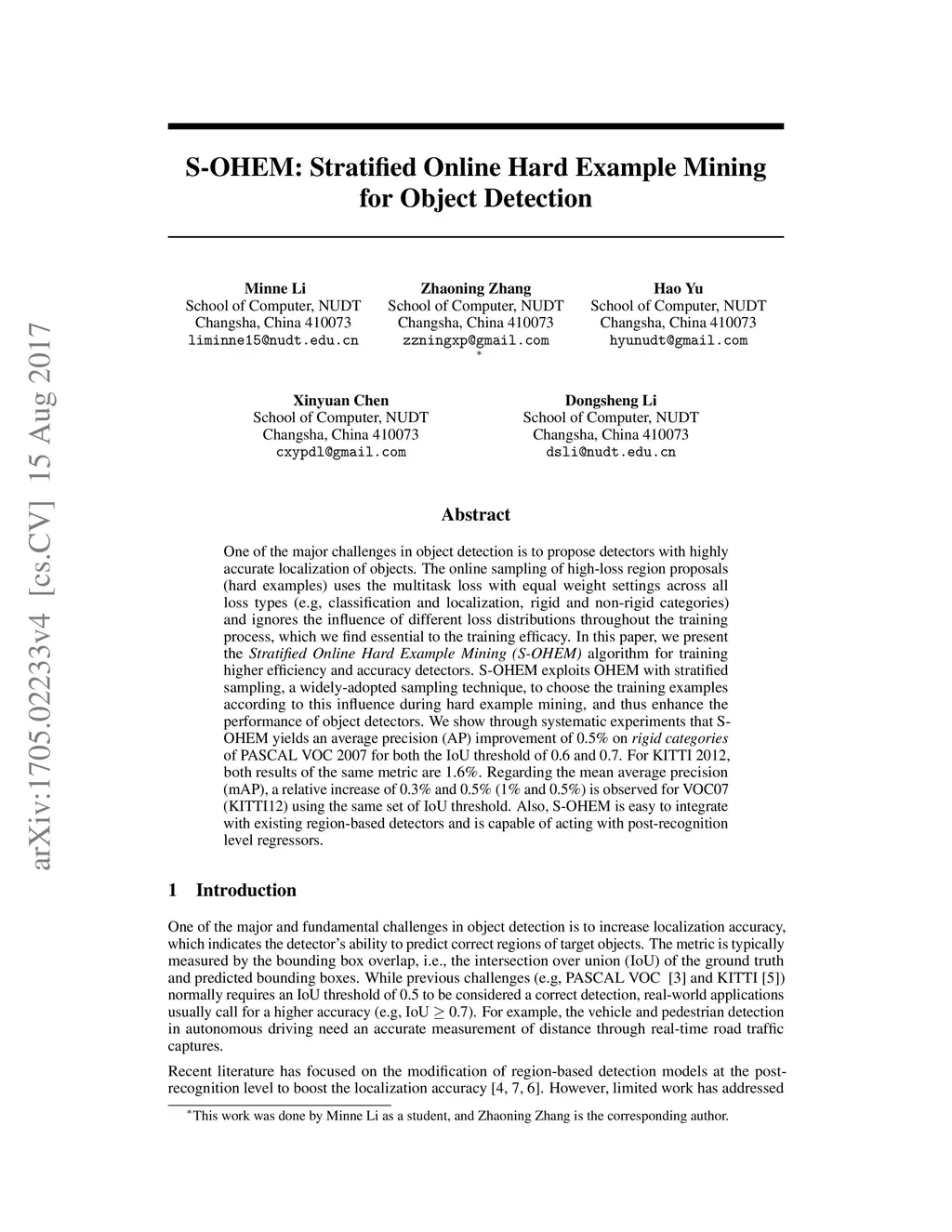 S-OHEM: Stratified Online Hard Example Mining for Object Detection