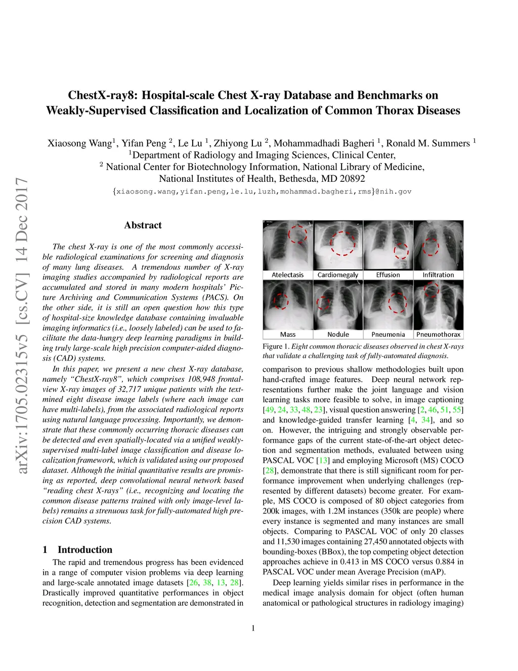 ChestX-ray8: Hospital-scale Chest X-ray Database and Benchmarks on